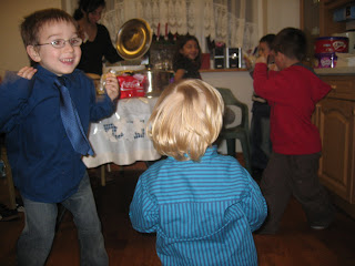 The thing I've learned from these get togethers is that, 1st you fuel the kids up with sweets and chocolates all day then watch them bounce around the house all night. This was about 10.30pm in the middle of a game of musical statues, both Theo and Louis still bouncing off the walls so the staying still part was definitely hard work for them and unsurprisingly Theo got a tad upset when he was out. Still, he soon recovered and joined in again. Poor Teddy was a casualty of the evening and came home with a groin injury after a tug of war between the various cousins, Mummy will be performing bear surgery later on this week.